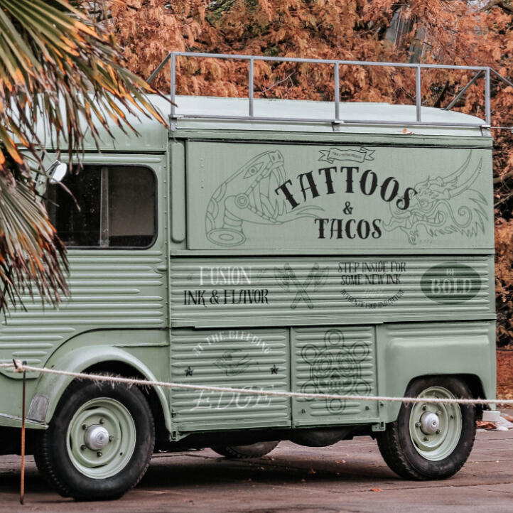 The idea for the restaurant began with a taco truck outside of a tattoo parlor, hence the name Tacos & Tattoos. We decided to flip the script with a publicity stunt: a tattoo truck outside of the restaurant.