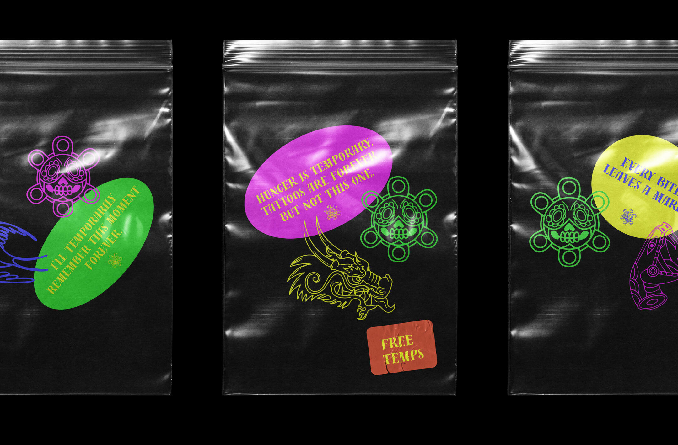 Once inside, customers can "order" tattoos the same way they're used to ordering food: first choosing their design, then color, then their artist.