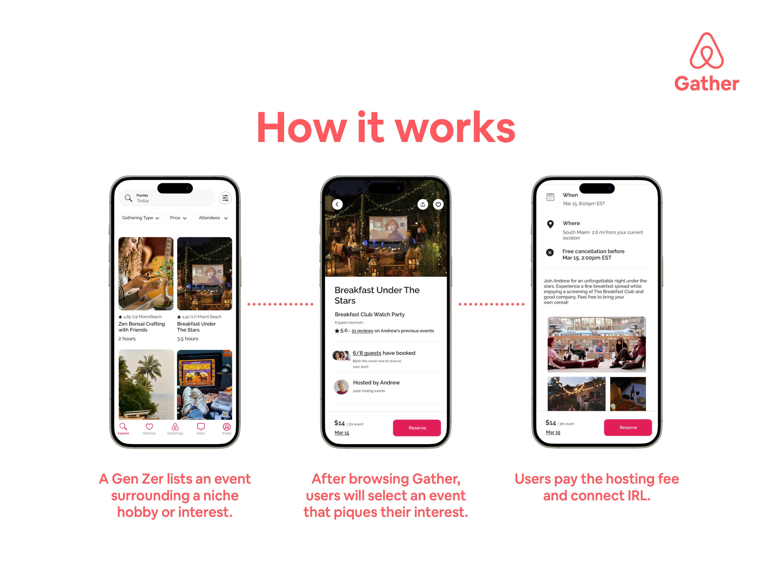 Despite being the loneliest generation ever with over 73% reporting feelings of isolation, Gen Z is still incredibly passionate about the things they love. So, to combat the loneliness epidemic, we used their niche interests to bring them together and create lasting IRL connections. AirBnB Gather is a new way to host that focuses on locals and hosted hangouts that brings Gen Zers together. From themed dinner parties to backyard movie nights—Anyone can host, and everyone belongs.